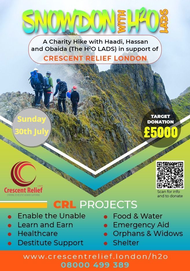 A charity hike with Haadi, Hassan and Obaida (the H2O lads) to support the varying crescent relief projects: